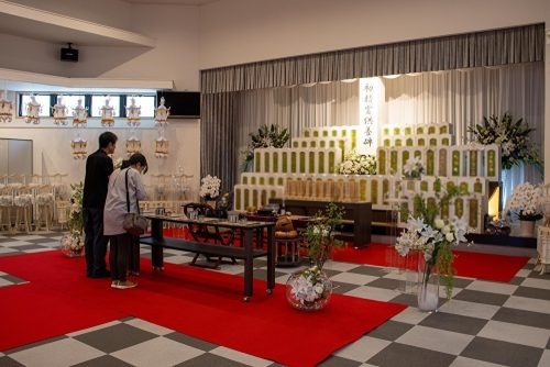 ご家族様やご親族様は、あすか斎苑祭壇前の焼香所にて手を合わせ、故人様を偲ばれました。